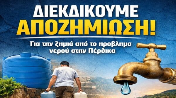 Με μια δυναμική ανακοίνωση-κάλεσμα, ο Σύλλογος Εμπόρων και Ιδιοκτητών Ενοικιαζομένων Δωματίων Πέρδικας περνά στην αντεπίθεση, διεκδικώντας αποζημιώσεις για τα χρόνια προβλήματα υδροδότησης που πλήττουν...
