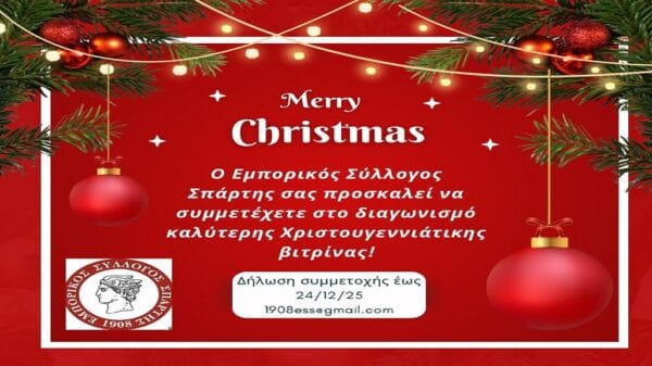 Ο Εμπορικός Σύλλογος Σπάρτης προσκαλεί όλα τα μέλη του να συμμετάσχουν ενεργά στον Διαγωνισμό Χριστουγεννιάτικης Βιτρίνας 2025. Στόχος του διαγωνισμού είναι να προσδώσει μια...