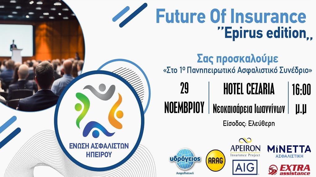 Το 1ο Πανηπειρωτικό Ασφαλιστικό Συνέδριο, με τίτλο «Future of Insurance – Epirus Edition», θα πραγματοποιηθεί το Σάββατο 29 Νοεμβρίου 2025 στα Ιωάννινα.
