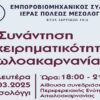Στις 26/3/2025 πραγματοποιήθηκε συνάντηση στο γραφείο του Ε.Ε.Σ.Ν. μεταξύ των δύο Εμπορικών Συλλόγων Άργους και Ναυπλίου. Σύμφωνα με τους διοργανωτές της συνάντησης ο στόχος...