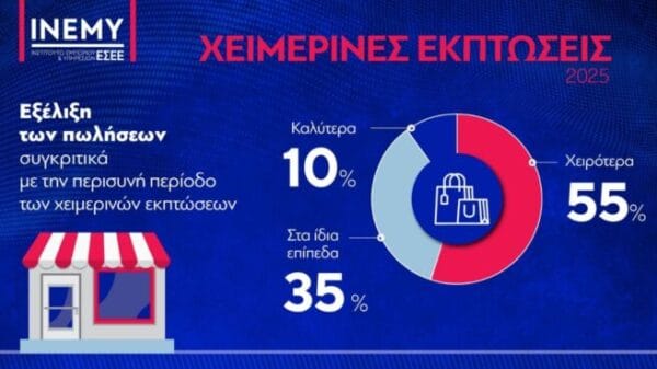 Η ΕΣΕΕ παρουσίασε για πρώτη φορά μαζί τα αποτελέσματα από την πανελλαδική έρευνα του Ινστιτούτου της ΕΣΕΕ για την πορεία των χειμερινών εκπτώσεων 2025...