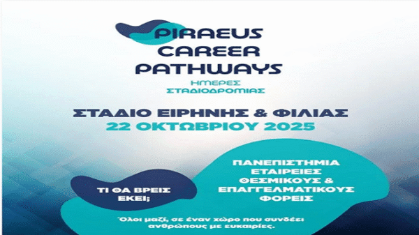 Με μεγάλη επιτυχία πραγματοποιήθηκε την Τετάρτη 22 Οκτωβρίου 2025 στο Στάδιο Ειρήνης & Φιλίας (ΣΕΦ) η εκδήλωση «Ημέρες Σταδιοδρομίας-Piraeus Career Pathways 2025». Η δυναμική...