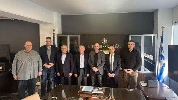 Ο πρόεδρος Θόδωρος Λουλούδης, ο Α’ αντιπρόεδρος Αντώνης Κουνάβης, ο οικονομικός επόπτης Φοίβος Καρακίτσος και ο υπεύθυνος Στήριξης Επιχειρήσεων Γιάννης Χριστόπουλος υποδέχθηκαν τον κ....